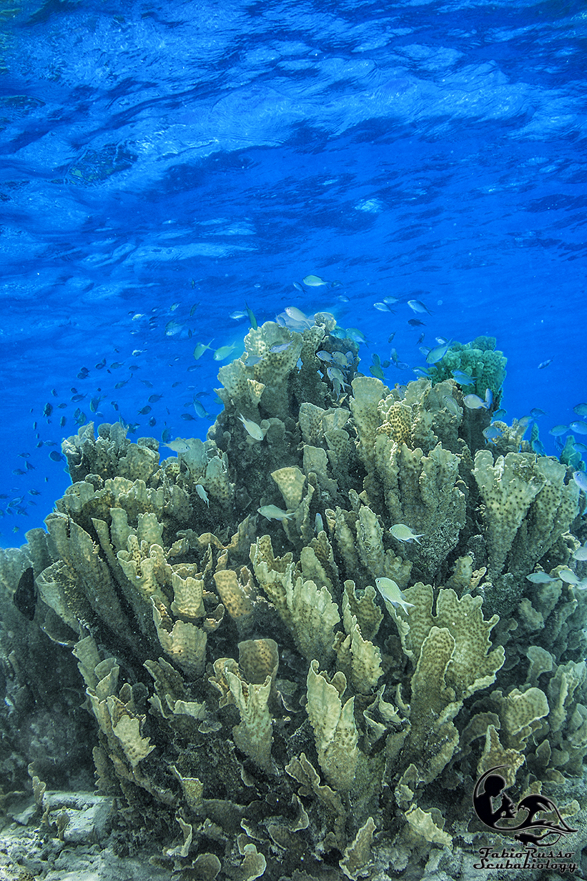 Tutte le forme più comuni sono presenti in questo piccolo spazio, possiamo osservare coralli massivi, laminari, colonnari, foliacei e ramificati.