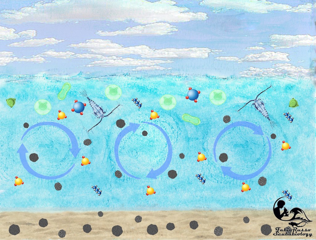 i nutrienti (azoto e fosforo, e in misura minore oligoelementi quali il ferro) tendono ad accumularsi sul fondo, dove avviene la degradazione della sostanza organica e dove precipitano quelli che provengono dall’esterno del mare attratti dalla forza di gravità con un ulteriore accumulo.