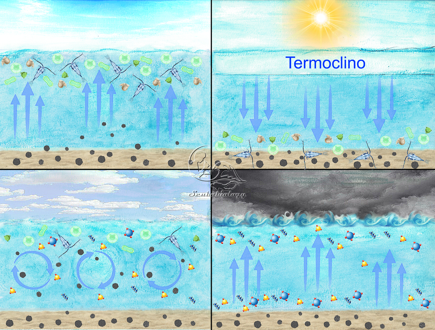In mare, come sulla terra, nelle regioni temperate, vi è una marcata stagionalità, ossia una netta divisione fra le stagioni. Se questo è ben evidente sulla terra ferma, solo chi frequenta assiduamente il mare tutto l’anno si accorge dell’alternarsi delle stagioni sotto il pelo dell’acqua, infatti, tutti sanno che in primavera sbocciano i fiori e si allungano i giorni, in estate maturano i frutti e fa caldo, in autunno cadono le foglie e si fa il vino mentre in inverno fa freddo e magari nevica, ma in mare che succede?