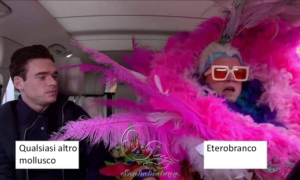 Abbiamo così terminato il nostro piccolo viaggio fra le colorate lumache del nostro Mediterraneo, l’argomento non si è sicuramente esaurito con questo striminzito articolo, ma spero di avervi dato un’infarinatura su di un argomento che appassiona molti. Vi lascio con un divertente meme che sintetizza al massimo l’appariscenza degli eterobranchi.