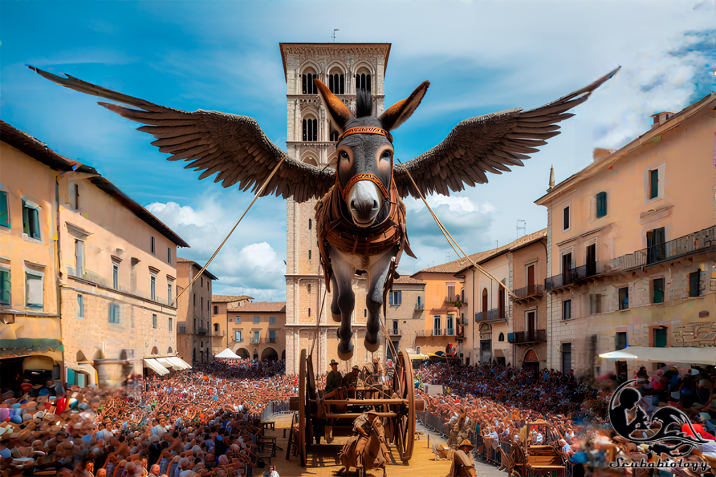 Ho sempre adorato l’espressione “credi agli asini che volano” con l’allusione a chi è molto ingenuo e credulone, come chi realmente credesse che gli asini possano volare. Il modo di dire ha origini antiche ed è legato ad un evento pubblico che aveva luogo un tempo a Empoli durante la festività del Corpus Domini, consisteva nel far scivolare lungo una corda tirata dal campanile un asino bardato di ali posticce fino a terra, dando l’impressione che volasse, a quel punto si interpretavano i segnali del suo comportamento come auspici per il successo del raccolto annuale, mi immagino che paura avesse dovuto provare quella povera bestia scaraventata giù da un campanile!