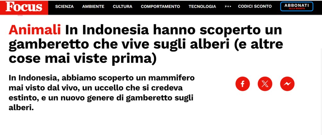 “Una spedizione nelle Montagne dei Ciclopi in Papua, Indonesia, ha portato alla scoperta di una nuova specie di gambero che vive sugli alberi, una scoperta sorprendente per gli scienziati che non si aspettavano di trovare questi crostacei tipicamente acquatici in un habitat così insolito.”