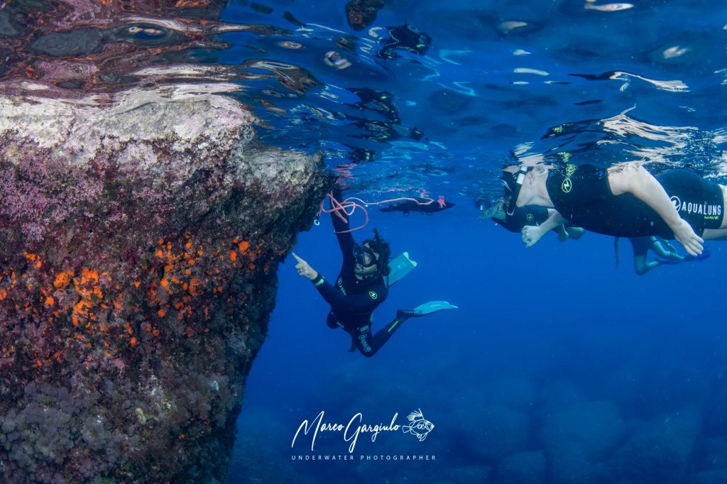 Adoro lo snorkeling, nonostante fisicamente sia più provante delle immersioni, si nuota per più tempo e si coprono tratti di costa più lunghi, dal punto di vista prettamente didattico ha un valore aggiunto che la vera immersione subacquea non ha. In primis con questa semplice attività si raggiungono molte più persone, anche solo lontanamente interessate ad un’escursione diversa all’aperto, in secondo luogo, il fatto di potersi fermare e spiegare cosa si è visto ha un valore divulgativo immenso.