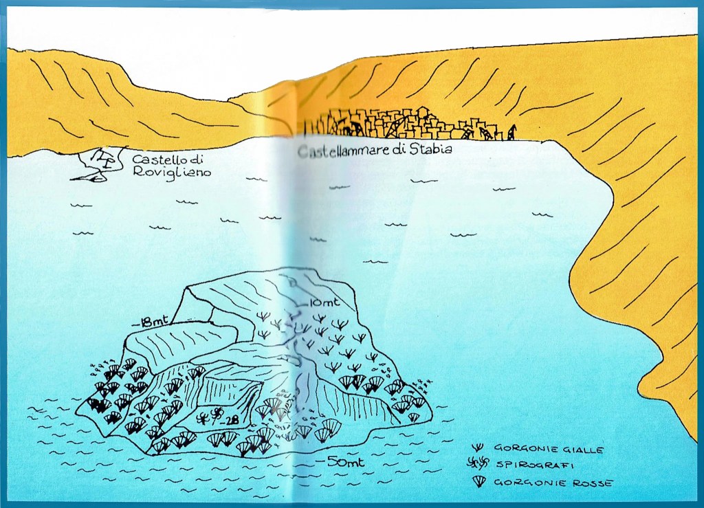Conoscevo già il banco dai racconti dei grandi e per un piccolo libro, scritto da Guido Picchetti: “LA PENISOLA DI SORRENTO, CAPRI, PROCIDA , ISCHIA”, Edizioni Il Subacqueo Libri, 1994″.