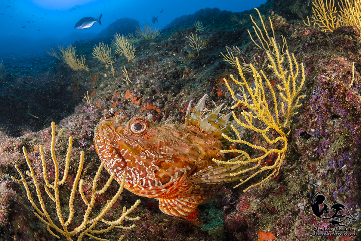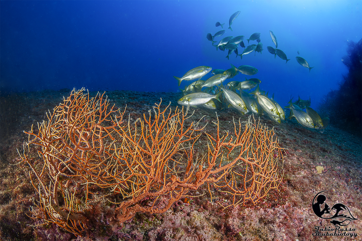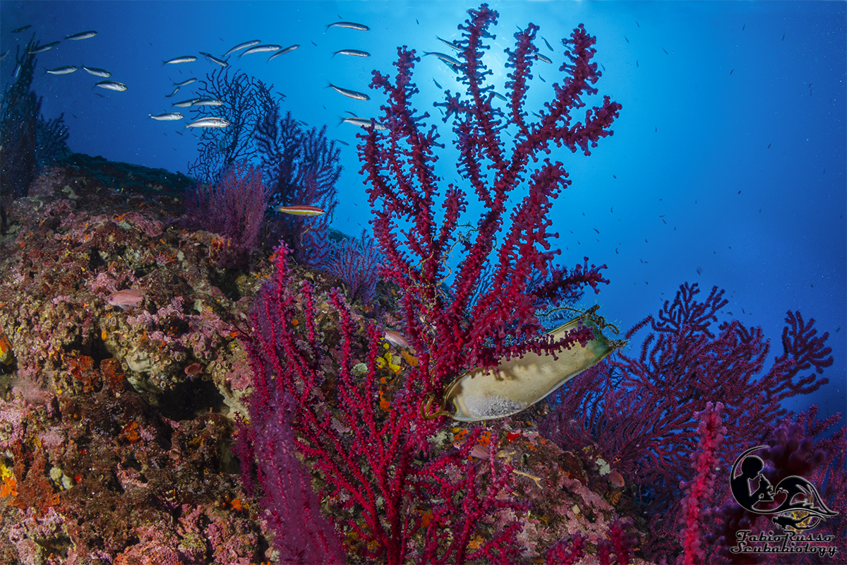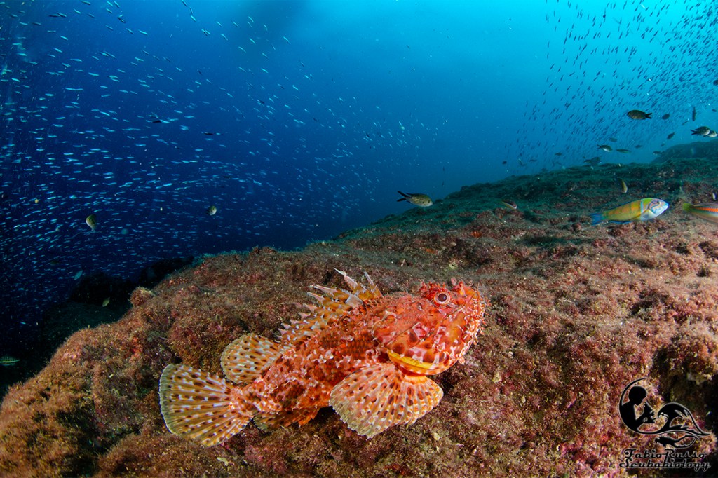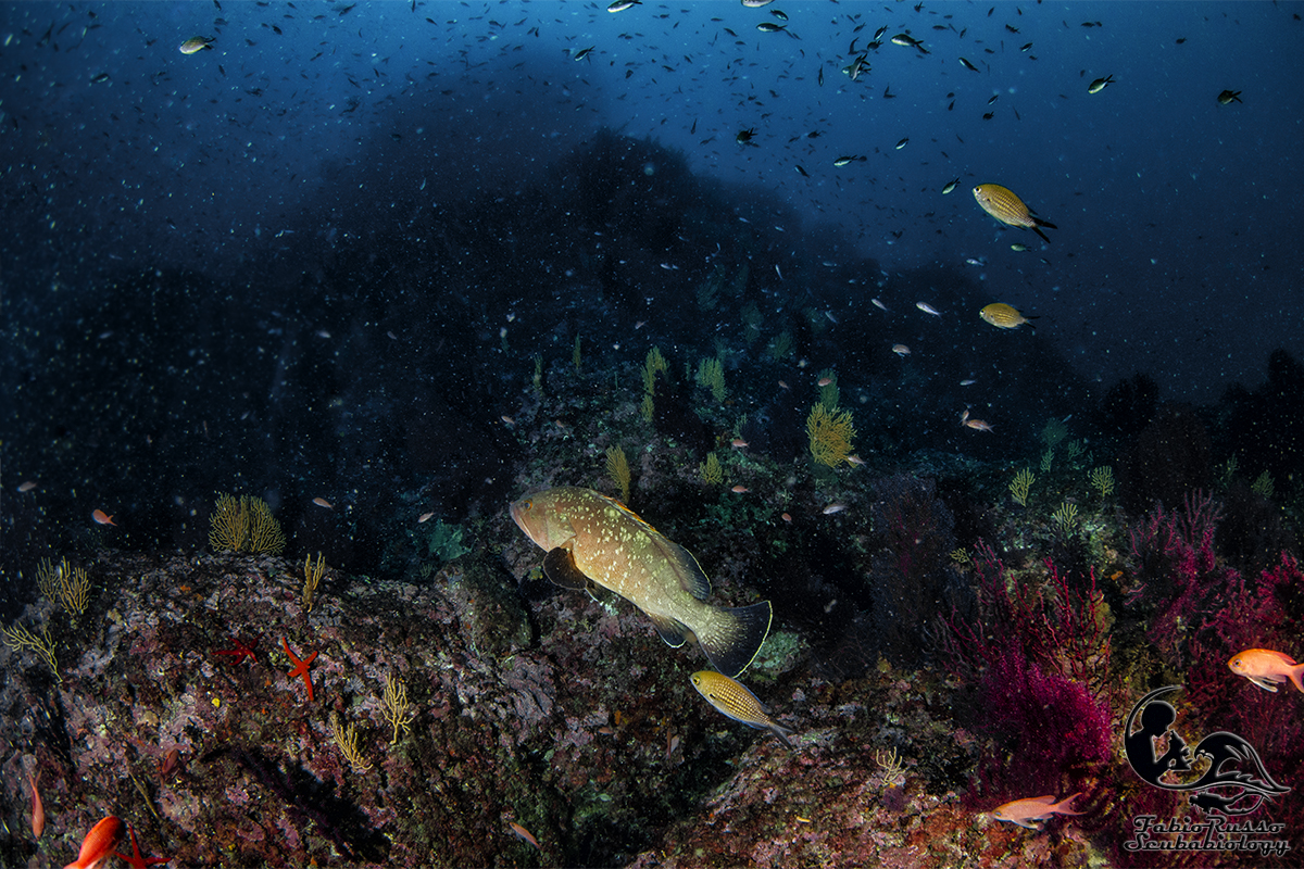 So benissimo che ciò che ricopre gli scogli colpisce molto poco l’immaginario del subacqueo medio e che qualcuno considera coreografia o (Dio mi salvi da un infarto) “vegetazione”, tutto quello che ricopre le rocce e non si muove, ma il banco non è ricco solo di vita bentonica: in realtà la fama di luogo magico per i sub è incentrata soprattutto sull’abbondante presenza di pesce.