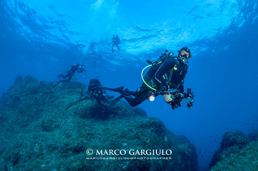 Sicuramente il mio primo brevetto da sub è arrivato tardi, mia madre Angela, che uno strano gioco del destino ha voluto che avesse per cognome Mare, pensava che l’immersione subacquea fosse un’attività pericolosissima. Per accontentarla presi il mio brevetto solo a 22 anni, con il mio inseparabile amico e primo compagno di immersioni Gaetano Dario Gargiulo, anche se “abusivamente” avevo già provato l’autorespiratore. La fotografia è venuta dopo ed è stato proprio Dario a contagiarmi, dapprima fu la voglia di immortalare per pure ragioni di identificazione gli organismi ma pian piano è divenuto altro! La mia prima macchina scafandrata e il mio primo flash me li regalò mio nonno materno poco prima di morire, era molto anziano e ormai viveva nel suo letto e quando gli mostravo i miei primi scadenti scatti una luce si accendeva negli occhi, un misto di commozione e stupore, lui era di un’altra epoca e non aveva mai indossato una maschera.